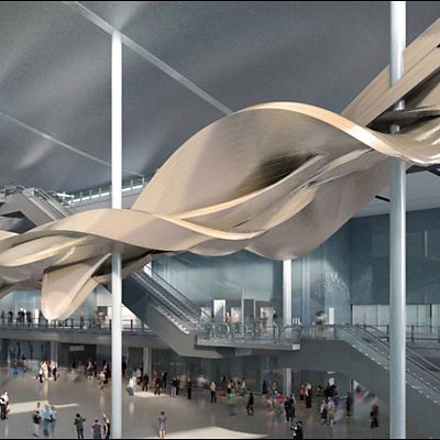 The best of the world's arts, film, music and literature brought to you every day. Presented by Mark Coles. Today's programme is dedicated to the art found in airports. Photo: Slipstream by Richard Wilson RA, 2012 © the artist
