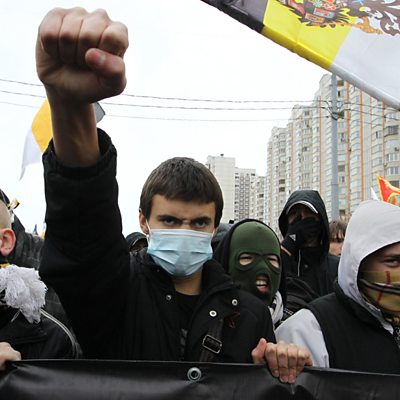 *** This episode of Assignment contains views and language which some listeners may find offensive. *** For years, far right Russian skinheads have been accused of hate crimes against immigrants in big cities like Moscow and St Petersburg. Now, with the authorities beginning to jail the supremacist gangs they deem to be responsible, the skinheads are vowing to fight back by becoming a more dominant political force. The BBC's Tom Esslemont has been finding out what drives Russia's far right. The producer of Russia's Far Right was Michael Gallagher. (Image: 'Ultranationalists' in Russia. Credit: Alexey SAZONOV/AFP/Getty Images)