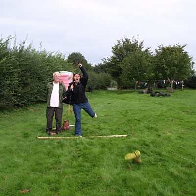 At a church fete in Oulton Street, Becky had to try welly-throwing to earn a clue.