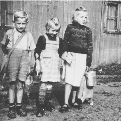 At the end of World War Two, many ethnic Germans in Central Europe were forced to leave their homes. No longer welcome outside Germany they ended up in internment camps, sometimes for years at a time. Hear from one woman who lived through that time. (Photo: Martha Kent and her siblings after their release from Potulice concentration camp)