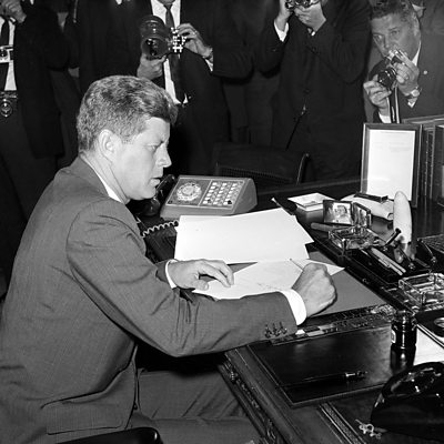 The Cuban Missile Crisis brought the world to the brink of nuclear war. Dino Brugioni was a CIA expert whose job was to interpret the photographs of missiles in Cuba. Photo: President Kennedy in the White House during the crisis. Associated Press