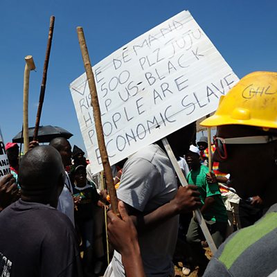 South Africa always has a "strike season" but this year is different. The wave of labour unrest sweeping through the country is tranforming the entire nation's prospects. Investors are shunning it, ratings agencies are downgrading it and the people are suffering. Matthew Davies reports from the bus queues of Africa's richest nation. Plus: do super schools produce super children? We speak to the head of a new World School which aims to create a new breed of multi-lingual international citizen. (Image: Striking miners stage a protest at AngloGold Ashanti mine in Carletonville, South Africa, Credit: AFP/Getty)