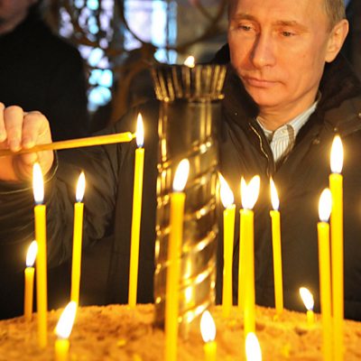 The island monastery of Valaam in northern Russia is a beacon for orthodox believers and a favourite of President Putin. He visits with his friend Silvio Berlusconi and has facilitated the donation of a luxury yacht to the monks. But all is not well with the island's inhabitants. Many resent the lavish lifestyles of some of the prominent clergy and complain that they face eviction by the church from land they thought was their home. With the recent convictions of the Pussy Riot protestors and a new law going through parliament outlawing blasphemy, Lucy Ash reports on the growing assertiveness of the church in Russia. (Image: Russia's Prime Minister Vladimir Putin lighting a candle. Credit: ALEXEI NIKOLSKY/AFP/Getty Images)