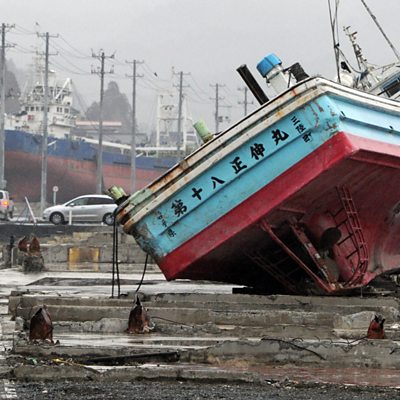 Shuichi Abe, the Japanese police inspector who draws pictures of tsunami victims to help their families identify them. Aboriginal singing sensation Lois Peeler on entertaining the troops in the Vietnamese jungle. And an Indian former wrestler on becoming a first-time dad in his nineties. Image: Vehicles moving among fishing vessels at Kesennuma Credit: Toshifumi Kitamura/AFP/Getty Images.