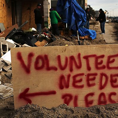On the east coast of America many people are still trying to climb out of that abyss of damp destruction caused by superstorm Sandy. Stephanie Hegarty got a frontline-sense of the scale of the task, when she volunteered to help people in a low-lying part of New York City Meanwhile, people will vote in snap elections on Sunday in the Spanish region of Catalonia. If pro-independence parties win, they've promised to hold a referendum on full-blown nationhood- to the fury of the central government in Madrid. Could this have consequences for the Catalans who have lived north of the Spanish border in France for more than three centuries? Petroc Trelawney has been getting a sense of the feeling in French Catalonia. (Image: A sign reads 'Volunteers needed please', Credit: Getty Images)