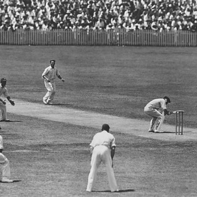 In 1932 a row between England and Australia over cricket became a diplomatic incident. The row erupted over controversial "Bodyline" tactics used by the English cricket team to win the Ashes. Photo: Australian captain W Woodfull ducks to avoid rising ball from Larwood. Getty Images