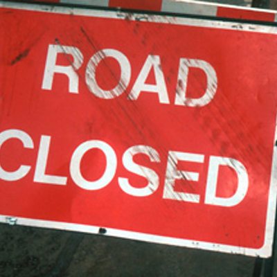 Johnny Dee talks to a policeman fining people who ignore a "road closed" sign at Welney Wash.