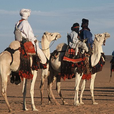 Islamist rebel groups in Northern Mali recently announced a ban on music in all areas under their control. We take you back to the first Festival in the Desert in 2001, which launched Tuareg music on the world scene. Photo: Tuareg at first Festival in the Desert. Copyright Andy Morgan