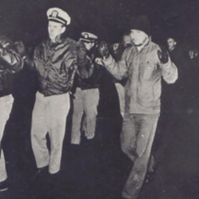 Forty-five years ago an American spy ship was captured by North Korean forces. The crew of USS Pueblo were held for almost a year, but they found small ways to resist. 'Skip' Carl Schumacher, a 24 year-old 1st Lieutenant, who was on board USS Pueblo, describes their ordeal. Photo: USS Pueblo's crew taken by North Korean military.