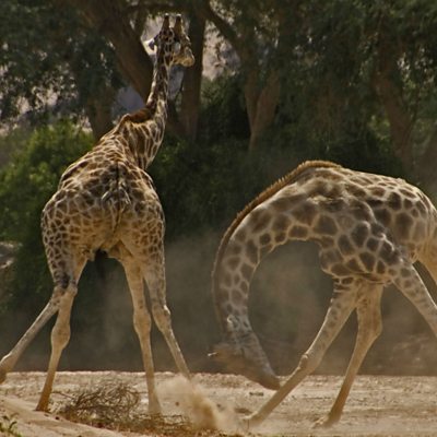 Producer Simon Blakeney and camera operators Alex Lanchester and Justine Evans discuss the unique footage of the fighting giraffes seen in the first episode of BBC One series Africa.