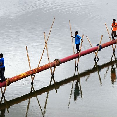 Everybody assumes that the biggest killers of children in poor countries are diseases like cholera, pneumonia and dysentery. Yet it's not actually true - in countries like Bangladesh drowning is the number one killer and it's a leading cause of death across south-east Asia. That's a quarter of a million child fatalities every year - as many as all the children and adults who drowned in the Asian tsunami of 2004. Yet because most child drownings go unrecorded and because they happen in ones and twos every day, rather than in one great cataclysmic event, the problem has gone largely un-reported. It's a hidden killer - a 'silent epidemic'. Mark Whitaker reports from Bangladesh and Vietnam - where the problem was identified with the help of the first US Ambassador to the country after the war, Pete Peterson. An ex-fighter pilot who spent six years as a prisoner of war in Hanoi, Peterson founded The Alliance for Safe Children which led the research that revealed the problem, and now leads a large drowning prevention programme. Children drown in these countries because there are so many ponds, irrigation ditches and rivers, often within yards of each house. Few know how to swim and the youngest are particularly vulnerable when mothers are too busy to supervise them closely. In Bangladesh, a country much of which is under water, TASC is pioneering a huge programme of 'survival swimming', training local instructors to teach simple swimming strokes, treading water and safe rescue. For children aged one to four there's a parallel programme of village creches to keep them safe while their mothers do the chores. (Image: Children use a pipe as a bridge in Bangladesh, Credit: AFP/Getty Images)
