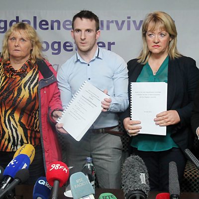 Jo Fidgen talks to Maureen Sullivan who was sent to work in one of Ireland's notorious Magdalene laundries at the age of twelve. We also hear from an earthquake-struck town in Italy where residents are are celebrating a new beginning. And we meet a Catalan man known as the ultimate mountain runner, Kilian Jornet joins us from the ski mountaineering World Championship in the high Alps. (Photo: L-R Marina Gambold, Mary Smyth, Steven ORiordan, Maureen Sullivan and Diane Croghan of Magdalene Survivors Together hold copies of a Government Report. Credit: Niall Carson/PA Wire)