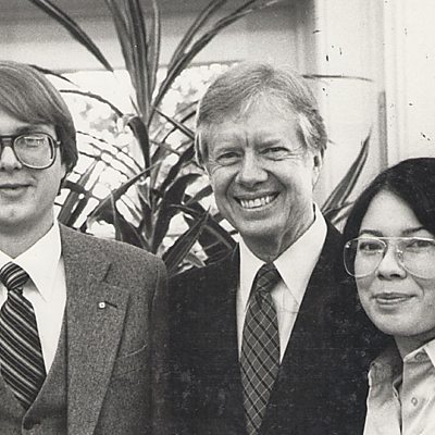 During the Iranian Revolution of 1979 militant students took 90 people hostage at the American embassy in Tehran. But a group of six embassy staff managed to escape, and the story of how they made it home has now been told in the Hollywood film Argo. After several months in hiding, sheltered by Canadian diplomats, the group posed as a film location scouting team to make it out of the country. The elaborate CIA led escape plan only came to light many years later when classified documents were released by the American government. Matthew Bannister meets Mark Lijek and his wife Cora, and Zena Sheardown, the wife of the late John Sheardown who was the Canadian First Secretary in Tehran. Picture: Mark and Cora Lijek with then US President Jimmy Carter (centre)
