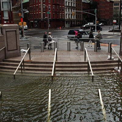 Hurricane Sandy ripped into New York in October 2012, taking lives, sparking a huge fire, flooding subways and tunnel connections and leaving thousands without power for days. As sea levels are predicted to keep rising, Hurricane Sandy was a wake up call to New York and to many other coastal cities that have to face the reality of rising sea levels and increased chances of hurricanes and storm surges. Much of lower Manhattan was up to ten feet underwater and the storm sent a 14-foot surge into New York's harbour that continued for miles up the Hudson River. As the city continues to mop up, Isabel looks at the ways in which it might prepare for future storms and flooding, from building great walls and sea defences to sealing the subways and tunnels. Isabel Hilton considers the lessons that New York has to offer other threatened coastal cities - along the Eastern Seaboard of America and right around the world. (Image: Water floods the Plaza Shops in the wake of Hurricane Sandy, Credit: Getty Images)