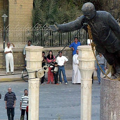 Ten years on, Matthew Bannister hears three different perspectives on the US-led invasion of Iraq. Kadhim al-Jubouri found fame after he was pictured taking a sledgehammer to a statue of Saddam Hussein in Baghdad's Firdous Square. But he says he now regrets his actions, as his hopes of a better future remain unfulfilled. Two young women from Iraqi Kurdistan tell how playing basketball takes their mind off the violence they've seen. And US Army Ranger Blake Hall, who served in Iraq in 2006 and 2007, describes his successful campaign to get the family of "Roy", his interpreter, a safe haven in the States. Roy's mother, Maladah, gives her thoughts on their new life in California. Picture: Iraqis in Baghdad's Firdous Sqaure watch Saddam Hussein's statue fall. Credit: PATRICK BAZ/AFP/Getty Images.