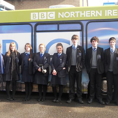 Buntaistí Choláiste Naomh Pádraig i Machaire Rátha á léiriú i bhfoirm "rap" ag daltaí na scoile.