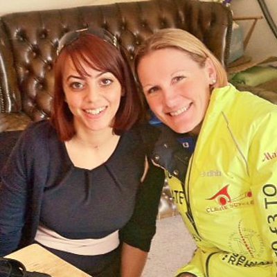Following Claire's progress as she finishes day one of her 400 mile cycle challenge.