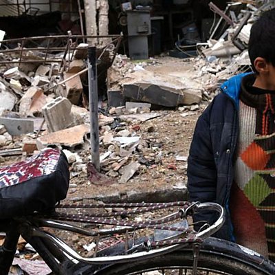 Lina Sinjab, the BBC’s Damascus correspondent, has reported for the World Service as the Syrian conflict progressed. But how has it changed her home city – and how has it changed her? In this intimate, revealing programme, she combines dramatic scenes and interview material with a personal audio diary as she discusses her thoughts, feelings and encounters. She meets a 14-year-old boy who’s volunteered to become a medical worker; she sees a young boy hitting a doll which he’s named after an opposition leader; she watches black smoke from explosions bloom across the city from the window of her apartment. She has flashbacks of an old man killed by a sniper and seeks refuge in listening to her favourite music. She joins a bizarre rooftop barbecue, as friends party and try to push the thoughts of conflict away and finally she leaves her beloved country, with thoughts of her friends and family who she has left behind echoing in her mind. “Every minute will stay in my mind and heart,” she concludes. “I’m not sure if and when I’ll be back.” (Image: A boy stands outside a destroyed house in Douma, Damascus suburbs. Credit: Lina Sinjab)