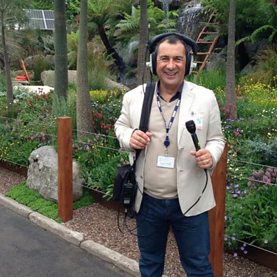 Murray Norton speaks to Jamie Oliver, Joanna Lumley and Lynda Bellamy at the Chelsea Flower Show
