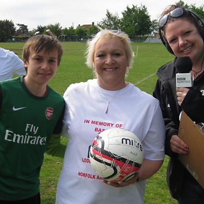 On a guest appearance in her old job, Becky had to test her footballing skills in Loddon.