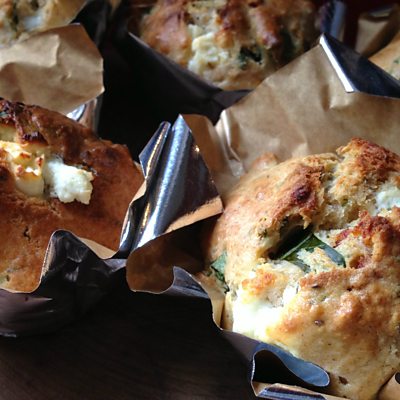 Ingredients: Dry Mix: * 350g plain flour * 1 1/2 teaspoons baking powder * 1 teaspoon dried thyme * Pinch salt * black pepper Wet Mix: * 3 large eggs, beaten * 250ml milk * 125g goats cheese, roughly chopped/crumbled * 75g Feta cheese, chopped into chunks * 125g sun dried tomatoes, chopped * 25g fresh basil, chopped * 1 teaspoon dried garlic granules (optional) Method: 1: Preheat your oven to 200C and place 10 muffin cases into a muffin tray. 2: In a large bowl combine the dry mix ingredients and mix well. In a separate bowl combine the wet mix ingredients and mix well. 3: Carefully fold the wet mix into the dry mix, fold in very gently just until the flour is combined otherwise you will get a very hard muffin, then spoon into the muffin cases and bake for about 25 minutes or until the tops are golden brown and the centres are cooked.