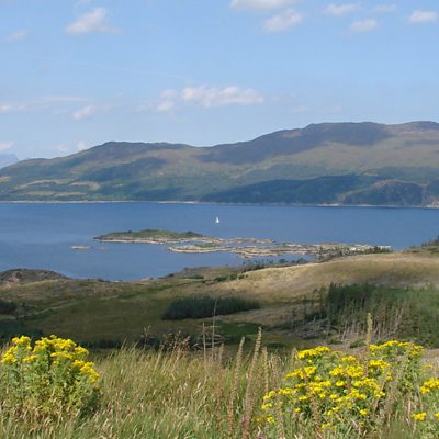 Dòmhnall Cameron agus Dòmhnall Meek a’ seasamh air a’ chladach ann an Caol Reatha.