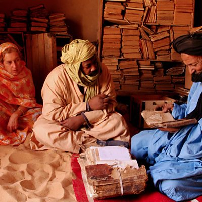 Abdel Kader Haidara risked his life to save hundreds of thousands of precious historic manuscripts in Mali when Islamist militants took control of Timbuktu. He called on the American conservation expert Stephanie Daikite to help him, in a dramatic rescue operation. Jack Reece, a British vet working in India, explains how you lance a boil on the back on an elephant. Also, Khaled Jarrar used to be a bodyguard for the Palestinian leader Yasser Arafat. But after he was shot in the leg he turned his back on the military life - and became an artist. He tells Matthew about his latest exhibition - he made work from concrete chipped from the wall erected between Israel and the Palestinian territories. And we hear from Kyrgyz lawyers who were beaten up because they defended Uzbeks after the ethnic violence of 2010. Picture: Abdel Kader Haidara (right) with Stephanie Diakite (left) and a Malian elder look at some of the manuscripts he saved Picture credit: Stephanie Diakite