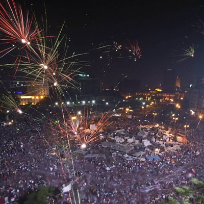 Continuing coverage and reaction to the political crisis in Egypt (Photo: Morsi protesters celebrating the army's announcement late into the night. Credit: AFP)