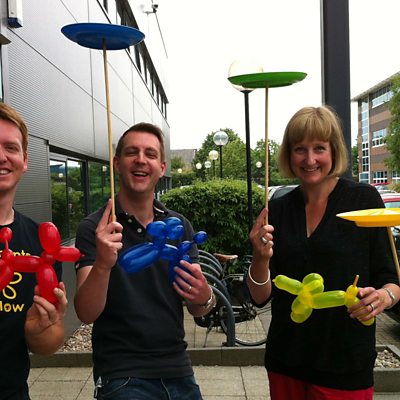 Nick learns circus skills with Guy Smith from the Fen Edge Festival.