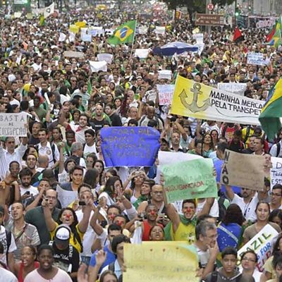 Hefin Jones o Barra Mansa yn trafod y protestio yn erbyn Cwpan Y Byd 2014 ym Mrasil