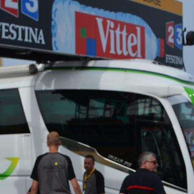 A team's bus got stuck under an arch at the finish line of the first stage of the Tour de France. Producer Olie D’Albertanson decided to go down to the bus and get a closer inspection.