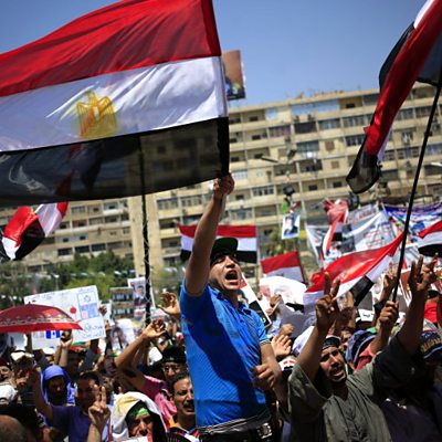 What is happening in Egypt? Also we discuss the abortion debate in America with Billy Joe Cain and his daughter Tuesday who received online abuse after holding a sign expressing her thoughts. Supporters and opponents of the deposed Egyptian President Mohammed Morsi are holding mass rallies in Cairo. This comes as Mr Morsi is held over allegations of links with Palestinian militants Hamas and plotting attacks on jails in the 2011 uprising. We hear from Egypt and put questions to regional experts who try to explain the current and evolving story in the country. Picture credit: Supporters of Egypt's ousted President Mohammed Morsi chant slogans and wave national flags during a protest at Nasr City, where protesters have installed their camp and hold their daily rally, in Cairo, Egypt, Friday, July 26, 2013. (AP Photo/Khalil Hamra)
