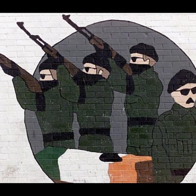 In July 2005 the IRA in Northern Ireland promised to put its weapons out of use.Catholic, Father Alec Reid and Protestant, Reverend Harold Good joined General John de Chastelain to oversee the decommissioning process. Hear their story. Photo: An IRA mural in Belfast. Credit: Press Association.