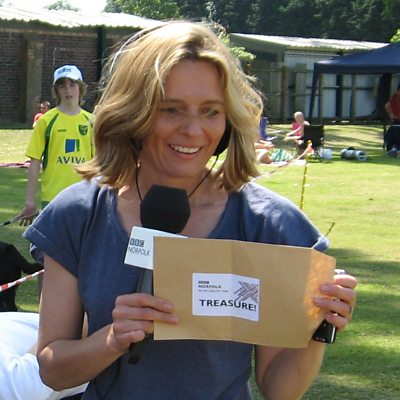 To earn the treasure in Downham Market, Julie Reinger had to have a go at the shot put.