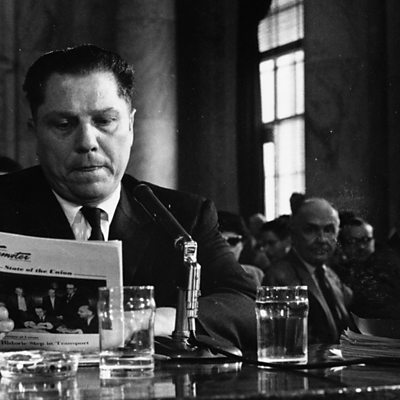 The controversial American union leader, Jimmy Hoffa, was last seen alive on July 30 1975. He is believed to have been killed by the Mafia. The search for his body continues to this day. Listen to one of the FBI agents involved in the original investigations. Photo: Jimmy Hoffa testifying at a hearing into labour rackets, 1958 (Keystone/Getty Images)