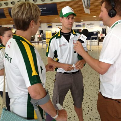 Jim Cathcart was live at the airport to wave goodbye to the Guernsey teams as they flew off for Bermuda.