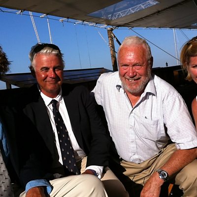 Sir Robin Knox-Johnston chats with Edward Leask and Brad Butterworth.