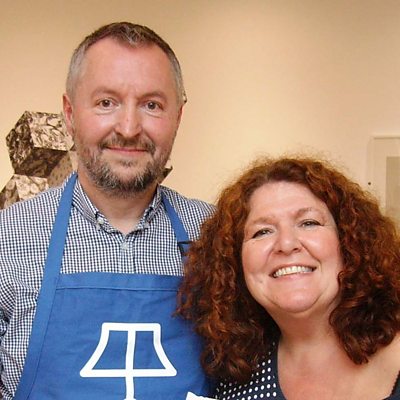 Robert Peters, of the Seacourt Print Workshop, shows Kim how to make a screenprint