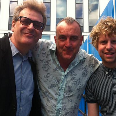 Fred squeezes Greg Proops, Jimeoin and Josh Widdicombe onto the sofa