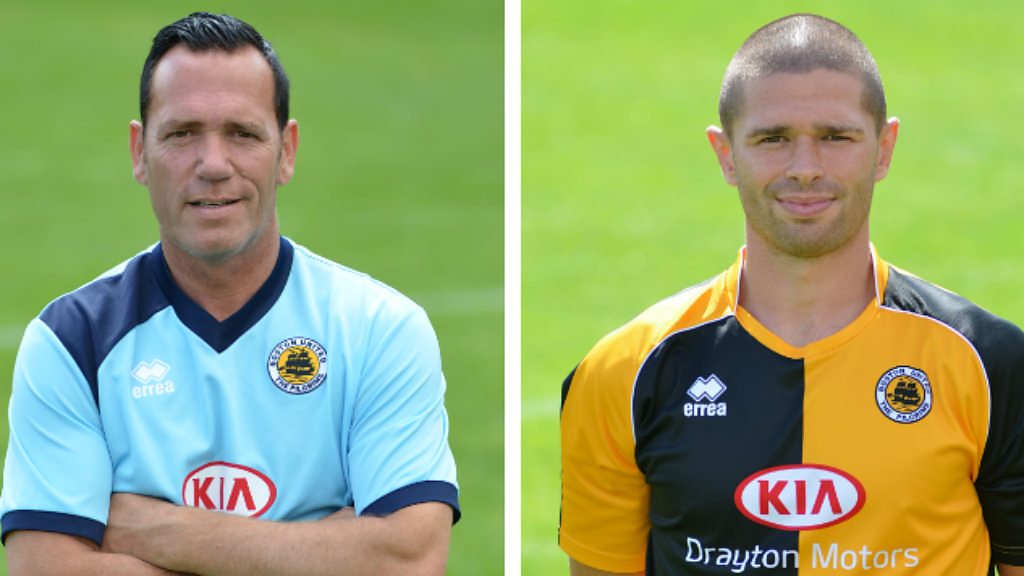 Boston United manager Dennis Greene and defender Scott Garner on the Pilgrims' 4-1 victory at Stockport County in Conference North