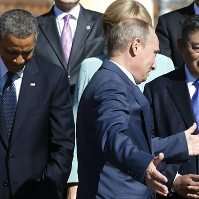 Russia has strongly criticised the Obama administration's call for military strikes on its ally Syria, saying it disputes that President Assad would use chemical weapons. It comes after tension over Russia giving the American whistleblower Edward Snowden temporary asylum and US criticism of the Kremlin's human rights record. We discuss if we're seeing the emergence of a new form of the Cold War between the two former adversaries. Plus, we look at which city will host the 2020 Olympics, which will be announced on Saturday: Photo: President Obama and President Putin at the G20 summit in St Petersburg (Reuters).