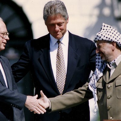 In September 1993, after weeks of secret negotiations, a peace agreement was signed between Israel and the Palestinians. Hear from Mona Juul, a Norwegian diplomat, who had a close up view of the talks. Photo: Yitzhak Rabin, Bill Clinton and Yasser Arafat on September 13th, 1993. Reuters.