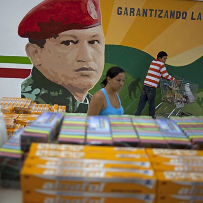 Venezuela, the richest oil economy in Latin America, is facing spiralling prices and shortages of food in the shops. With inflation at 45%, it now has possibly the world's highest inflation rate. We hear from ordinary Venezuelans about what it is like coping with the situation, and from the government about their plans to boost industrial production. We speak to Gustavo Coronel, former head of PVDSA - the Venezuelan state oil company - who tells us that the government's cash reserves are running out. The late President Hugo Chavez promised to transform the lives of Venezuela's poor. Is the latest crisis threatening to undermine that pledge? (Photo: A mural of late President Hugo Chavez adorns a supermarket wall as customers shop in Maracay, Venezuela. Credit: AP)
