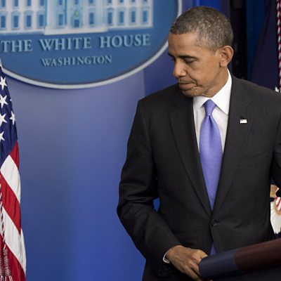 The US debt default has been averted temporarily. Is President Obama stronger or weaker now? We will get international reaction to the deal and speak to American public workers on their first day of work after about two weeks.(Picture: President Obama briefs the press late on Wednesday night. Credit: Saul Loebsaul / AFP / Getty Images)