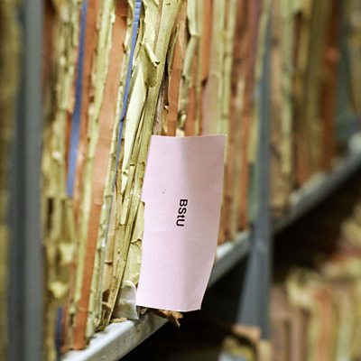 In 1991, one of East Berlin's most famous poets was revealed to have been an informer for the secret police. Sascha Anderson speaks to Witness about his double life. Photo: A shelf in the files department of the Stasi-archives in Berlin. Credit: Johannes Eisele/AFP/Getty Images.
