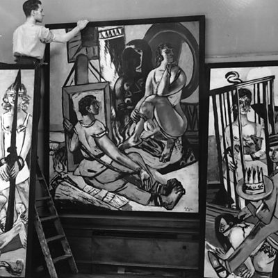 In 1937, Hitler and the Nazi party organised a huge exhibition of modern art in Munich. It was designed to ridicule works of art which they disapproved of - they called it Degenerate Art. It went on to be one of the best attended modern art exhibitions of all time. Picture: Two men prepare to hang German Expressionist painter Max Beckmann's triptych 'Temptation' at the 20th Century German Art Exhibition at the New Burlington Galleries, London. The exhibition includes work by all the German artists pilloried by Adolf Hitler in the 'Degenerate Art' exhibition in Munich of 1937. (Photo by Topical Press Agency/Getty Images)