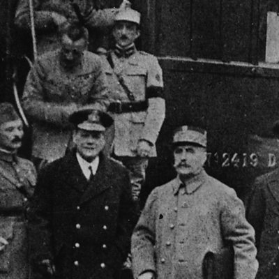On November 11th 1918 at 11am, the guns of World War One finally fell silent. Listen to voices from the archives remembering that moment. Photo: Marshall Foch and other military leaders outside the railway carriage where the WW1 Armistice was signed on Nov 11th 1918. (Three Lions/Getty Images)