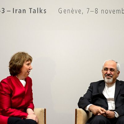 Jeremy Bowen analyses the ploys of both diplomats and journalists while observing nuclear negotiations in Geneva. Fancy footwork and a level of discretion are required in both professions - but how exactly can a salad nicoise give strategic advantage? And what are the chances that the next round of talks about Iran's atomic ambitions can forge some sort of international consensus? Plus, sweating for fame, Will Ross visits the sweltering hothouse of talent which is the Lagos School of Music, and takes in a satirical photographic series, which prove that the arts are alive and well in this teeming city. (Photo: EU foreign policy chief Catherine Ashton (L) speaks with Iranian Foreign Minister Mohammad Javad Zarif (R) before the start of nuclear talks in Geneva. Fabrice Coffrini /AFP/Getty Images)