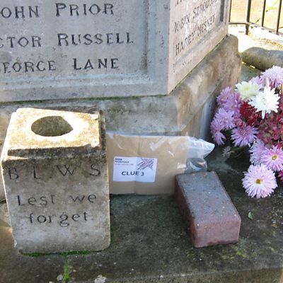 After finding a clue at Foulsham's war memorial, Julie reads some of the names inscribed.