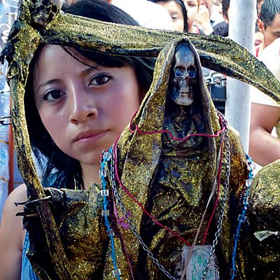 Vladimir Hernandez follows the Mexican priests who believe they can fight the evil of drug trafficking through the ancient Catholic practice of exorcism. It is estimated that 60,000 people have died in Mexico in the "drug wars" linked to the narco-traffickers, who are among the most vicious criminals in the world. To some Catholic priests and believers, this is clear evidence that the Devil has taken hold among much of the population. They also point to the popularity of cults like that of "Santa Muerte", the saint of death, who is a figure of popular veneration among some of the narco-gangs. The priests are responding by practising exorcisms, both in private and public, as they seek to expunge this evil. Vladimir watches dramatic individual and mass exorcisms, hears from those who have been through the rite and talks to critics and supporters of the practice. (Image: A young woman in Mexico City with a statue dedicated to the folk saint Santa Muerte or ‘Saint Death’. The Roman Catholic Church condemns the cult of Santa Muerte as ‘Satanic’. Credit: Keith Morris)